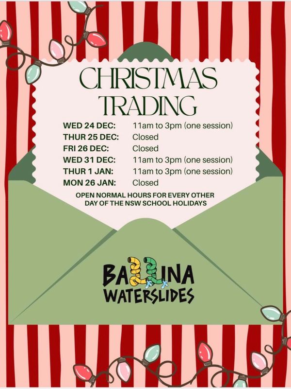 Patrons must comply with all staff directions and park signage. Ballina Waterslides can refuse entry or ask patrons to leave without refund.