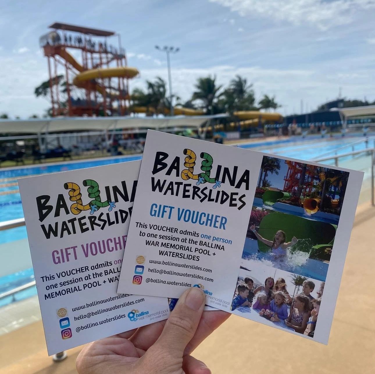 Located within Ballina War Memorial Pool Las Balsas Plaza, Ballina NSW 2478 E: hello@ballinawaterslides.com W: www.ballinawaterslides.com OPEN WEEKENDS AND NSW SCHOOL HOLIDAYS FROM SEPT/OCT to APRIL/MAY